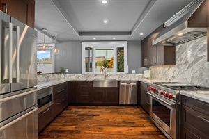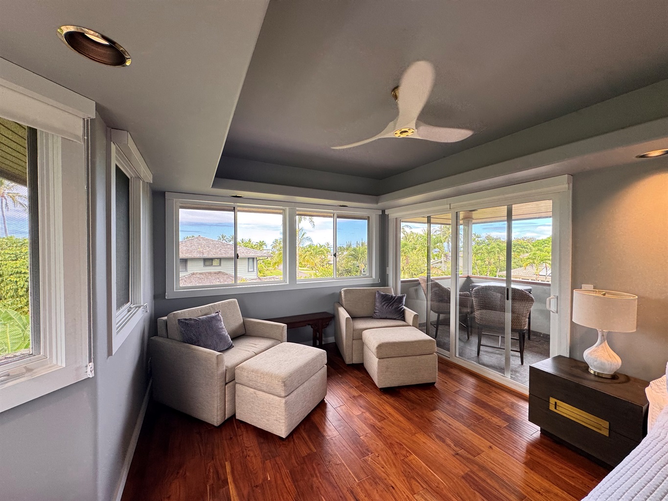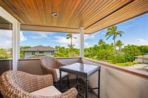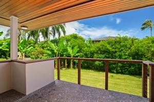 This is a luxury three bedroom home in Princeville with a wonderful flow and space that provides a great environment for relaxing or having small family gatherings. The kitchen is fully upgraded with a Wolf stove as well as other luxury appliances. The dining room and living room are large well proportioned spaces that are very comfortable for lounging. Every room has a garden view and the balcony has a mountain view.