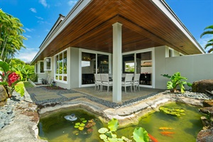 There is a Koi pond. The office includes a comfortable desk with a monitor for those of you that need to work remote.